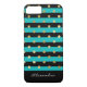 Monogrammed Girly Turquoise Aqua Blue with Black Stripes and Gold Foil Circles Smart Phone Case that you can add your name to. Please contact the designer if you would like additional matching items.