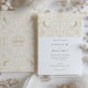 This charming wedding invitation is a testament to romantic elegance with its dual bird design, representing the unity of the bride and groom. Set against a sophisticated Victorian-inspired floral backdrop, the invitation features a pair of birds delicately perched within a tapestry of gold, champagne, and alabaster hues. The luxurious colour scheme is rich with warm golden tones, contrasting subtly with the creamy background, embodying the essence of a timeless love story. This invitation is a perfect prelude to a wedding that celebrates both love and tradition.