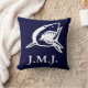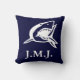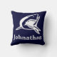 Design by Sandy Closs Nautical ocean themed decor white sharks on a blue pillow