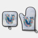 Monogram 'V' decorative floral design Oven Mitt & Pot Holder Set