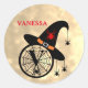 Monogram V Halloween Sky Witch Spiders Name Classic Round Sticker