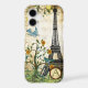 Trendy Elegant Eiffel Tower Ephemera Folksy Fairycore Cottagcore Love Birds Vines Flowers and Whimsical Musical Notes Sheet Music Overlay Tree Earth Tones and Yellow Coral Teal iPhone Cases