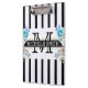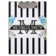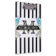 Monogram Vintage Floral Black Stripes Clipboard