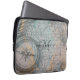 Vintage map with compass monogram design on a grunge blue, gold, and teal background. If you're a lover of old, vintage world maps then this design is for you. Add your monogram and family name or first name to the laptop sleeve and make it uniquely yours.