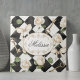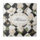 Monogram Vintage Rose Flowers Black White Diamond Tile