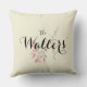On the pillow front is a black letter W with pink leaf sprays. On the back is "the W-------s' ". To edit name, or change it to your first name, click on "Customise", then choose the "back" image. Click on "Change/Edit text". Type your name into the box and press the check. The name can be sized by clicking on the - or +. You can also change the background colour - pale colours are best. Lastly, please choose a size and material. If you came to this page through a search, click on my store name to see all of my items for sale.