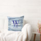 Customisable personalizable square throw pillow with monogram Initial letter, Family Name and Date, Established year. Great as housewarming, new home, birthday or newlyweds gift. Monochrome pastel neutral in blue, navy, teal, grey, white nuances, reminding of nautical, maritime, marine beloved design theme, lake house, beach house aesthetic style. Watercolor striped original hand painted pattern.. For your home decor, or as an original creative thoughtful and useful gift. It is easy to match and will surely be appreciated and admired.