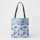 Monogram watercolor blue & white foliage tote bag