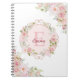 Monogram Watercolor Blush Pink Rose Flowers Floral Notebook