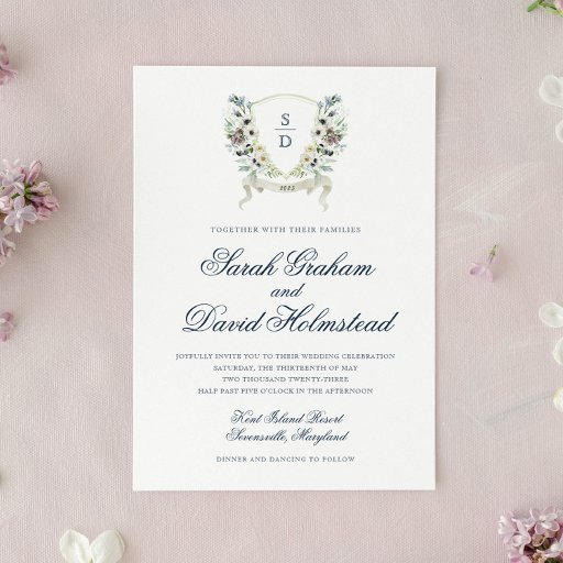 Aenome Floral Watercolor Wedding Crest Invitation Designed by Cari Colclough