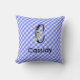 Monogram watercolor flower gingham blue pattern cushion