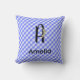 Monogram initial watercolor flower gingham blue pattern Throw Pillow