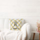 Monogram initial watercolor flower gingham yellow grey pattern Throw Pillow