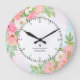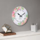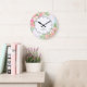 Monogram Watercolor Ombre Floral Greenery Pink Large Clock