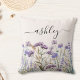 Monogram Watercolor Purple Wildflower Meadow Cushion