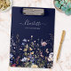 Monogram Watercolor Rustic Pretty Wildflower Field Clipboard