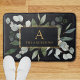 Monogram Watercolor Tropical Green Leaves Bath Mat
