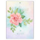 Beautiful rose with leaves and twigs and turquoise watercolor ombre. Shades of pink, peach, green, turquoise. Fine art watercolor artwork. Watercolor ombre background, lilac, lavender, light blue, pink, yellow. Monogram and custom name.
