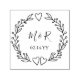 Wedding mongram and date stamp, personalised with your initials and wedding date. Your initials are lettered in elegant handwritten typography and set in a doodle drawn botanical frame of love hearts and foliage. A sweet design perfect for wedding stationery and favours.