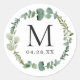 Monogram Wedding Date Eucalyptus Leaves Wreath Classic Round Sticker
