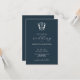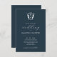 Save on paper and money with this monogram wedding invitation with QR code. A simple yet classy design, this wedding invite features both calligraphy typography with a classic sans font in white over a midnight blue. An elegant crest frames the bride and groom's initials. The card reverses to a matching blue colour with your wedding QR code and space for additional details. All the colours are customisable. For more budget wedding invites visit www.zazzle.com/dotellabelle