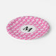 Monogram White and Hot Pink Fleur de Lis Pattern Paper Plate