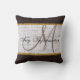 Monogram White & Brown Rustic Burlap Jute Cushion