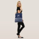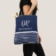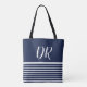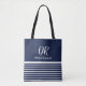 Monogram White Horizontal Stripes elegant blue Tote Bag
