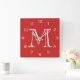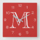Monogram White Numbers On Red wccn Square Wall Clock