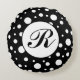Monogram White on Black Polka Dot Pattern Round Cushion