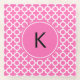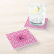 Monogram White on Hot Pink Quatrefoil Pattern Glass Coaster