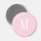A round magnet with a white monogram on a light pink background. Customise the magnet with your own initial or initials, colours, among other options.
