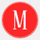 A classic round sticker with a white monogram on a red background. Customise the sticker with your own initial or initials, background colour, among other options.