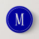 A round button with a white monogram on a royal blue background. Customise the button with your own initial or initials, colours, among other options.