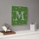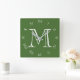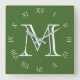 Monogram White Script Roman Numbers On Green wccnt Square Wall Clock