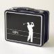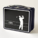 Monogram White Silhouette Golfer on Black Metal Lunch Box