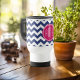 Monogram with Chevron Pattern - Navy Magenta Travel Mug