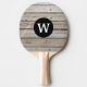 Custom monogram wood look ping pong paddle. You'll love this rustic and modern look with your monogram! White initial letter in a black circle and a background of pine wood slats.