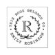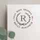 Custom-designed bookplate stamp featuring rustic elegant monogram wreath design.