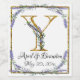 A romantic and elegant design with monogrammed gold sparkle letter framed by eucalyptus and lavender painted in watercolor.