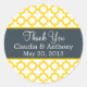 Monogrammed yellow quatrefoil pattern on white background wedding thank you stickers. Yellow and white quatrefoil pattern with charcoal accent.