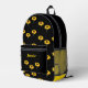Monogram yellow sunflowers on black printed backpack