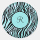 Monogrammed Personalised Black and Teal Turquoise Zebra Print Classic Round Sticker Envelope Seal