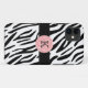 Trendy monogram zebra print iPhone 5 case features black zebra stripes and a accent black border with a pastel pink volleyball for your initial. Show your personality with this trendy and fun iPhone 5 case. Makes a great gift for all occasions. Click the "Customise it!" button to change the background colour, text colour, text size, font style and more!