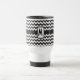 A stylish white Travel Mug for you to personalise, with a zigzag pattern of trending Black and White chevrons. If you prefer the travel mug without an initial, you can easily customise it by deleting the initial (text) and moving the chevron pattern upwards until the plain text area disappears.