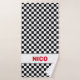 Monogramed Black and White Chequered Flag 2 Bath Towel Set