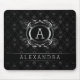 Monogramed Black & Silver Grey Baroque Frame Mouse Pad