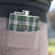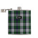 Handsome flask with the classic dark blue, white and green Black Watch Dress tartan plaid pattern. Personalise the three letter monogram, on the metal looking plaque, to suit your needs. Great gift idea for any guy and especially great as a wedding party gift for groomsmen.