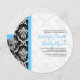 Monogramed elegant vintage floral damasks in white with ornate black floral damasks design, customisable wedding invitation template