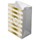 Monogramed Gold Tones & White Stripes Pattern Medium Gift Bag